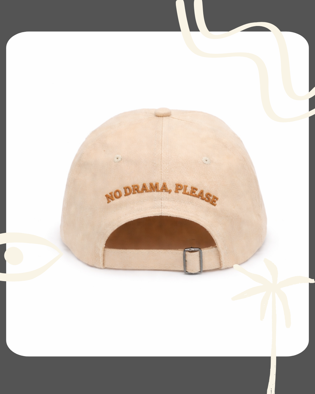Au dos, la signature « No drama please » vient compléter la pièce, brodée dans la même tonalité caramel pour une finition harmonieuse et identitaire.